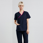 Biz Care Womens Contrast Crossover Scrubs Top BIZ-H10722